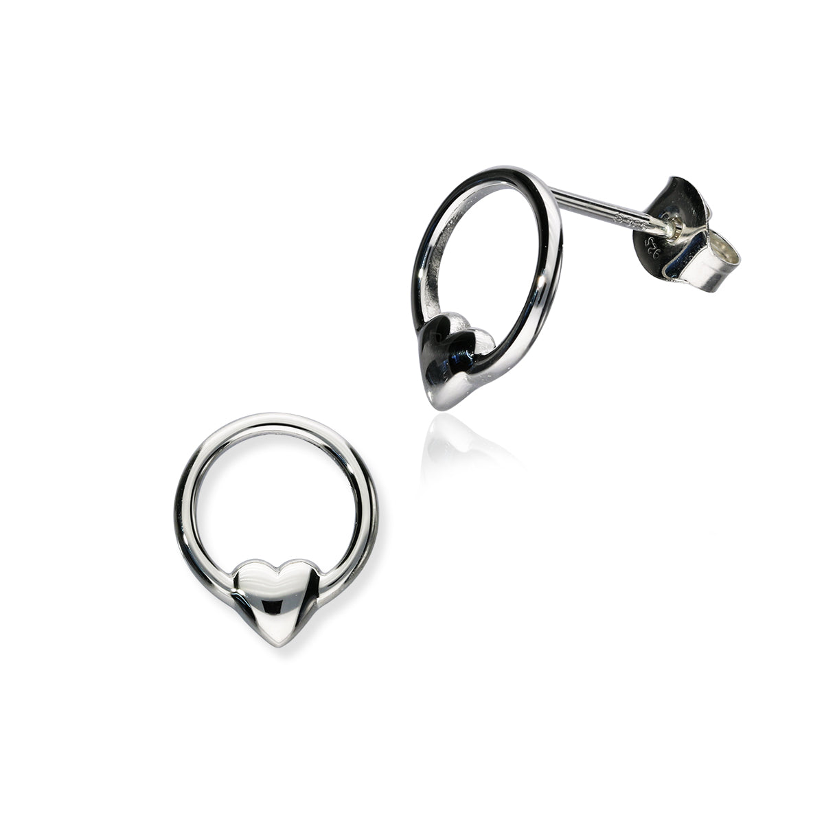 Dainty stud earrings available in a mix of polished and matt silver featuring a romantic heart.
