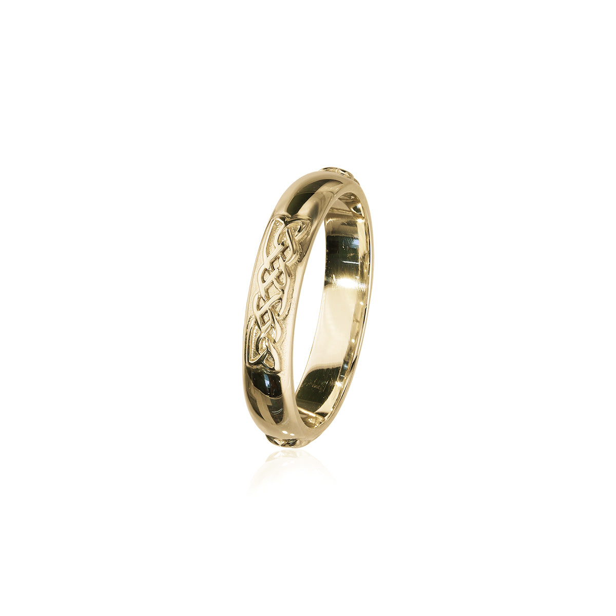 This beautiful 9ct gold ring is influenced by the work of Celtic craftsmen, whose well - recognized knot patterns have come to symbolize the hope of eternal life.