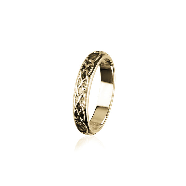 This beautiful 9ct gold ring is influenced by the work of Celtic craftsmen, whose well - recognized knot patterns have come to symbolize the hope of eternal life.