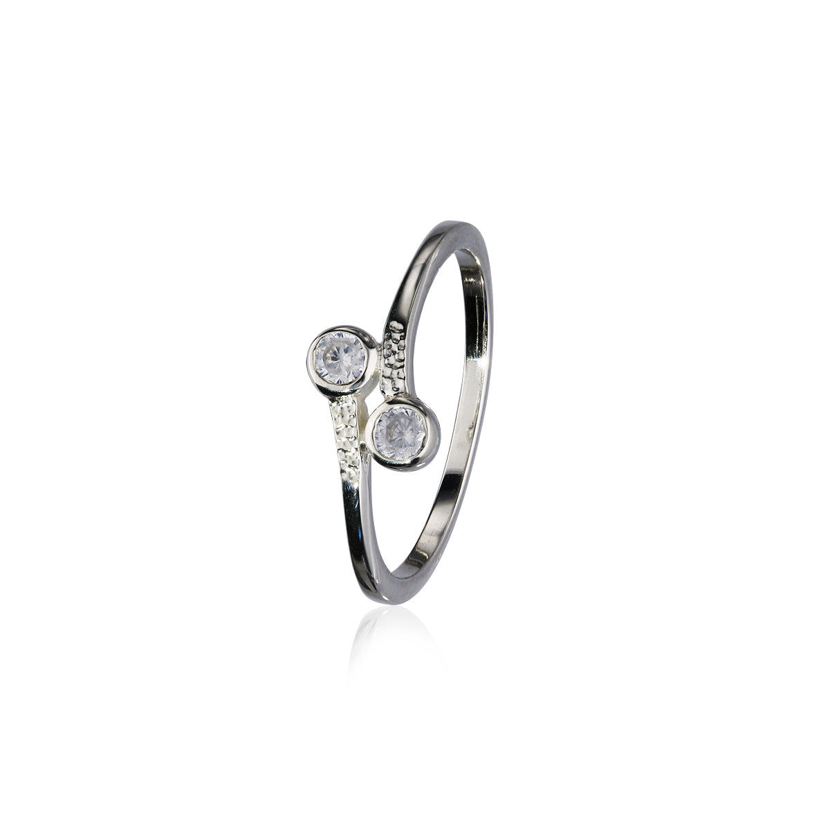 A stylish ring crafted in Sterling Silver featuring two cubic zirconias in a bezel setting.
