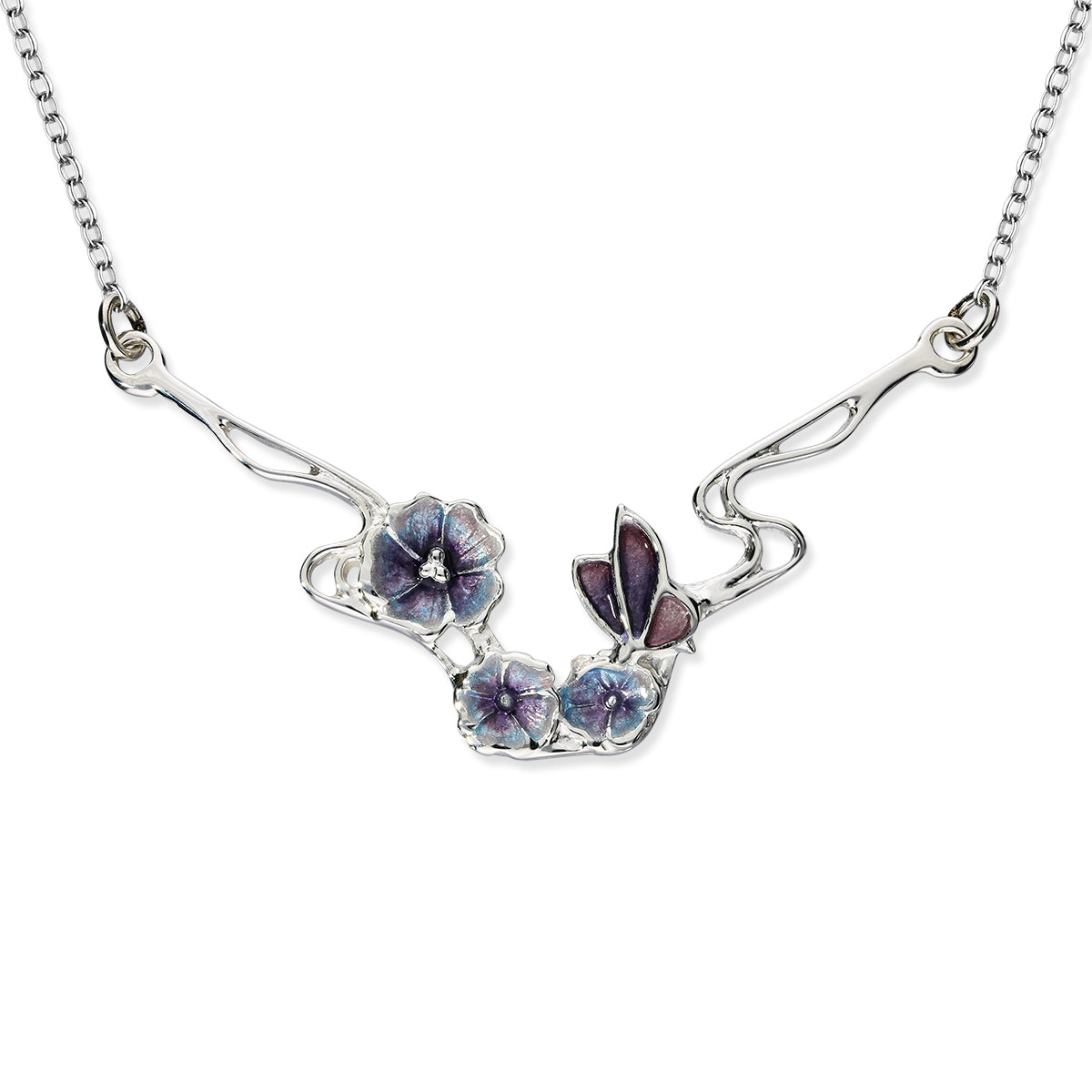 This delicately designed necklet from the original 'Pat Cheney' collection is available in sterling silver and complemented with a silver dropper and enamel colours from the Amethyst Bluebell colourway.