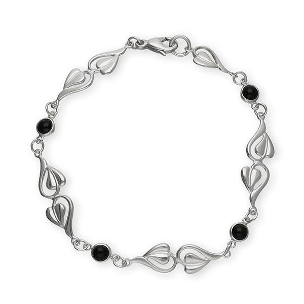 A dainty Sterling Silver bracelet featuring the Art Nouveau leaf design, crafted in Sterling Silver and complemented with Black Onyx stones.