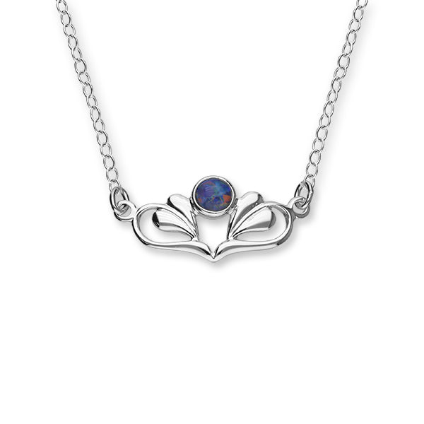 A delicate Sterling Silver designed necklet, featuring the Art Nouveau leaf design and set with a vibrant Opal Triplet stone.