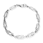 An intricate sterling silver bracelet made up of 9 links to create intertwined silver links.