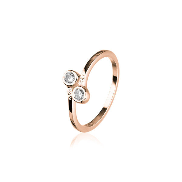 A stylish ring crafted in 9ct gold. featuring two cubic zirconias in a bezel setting.