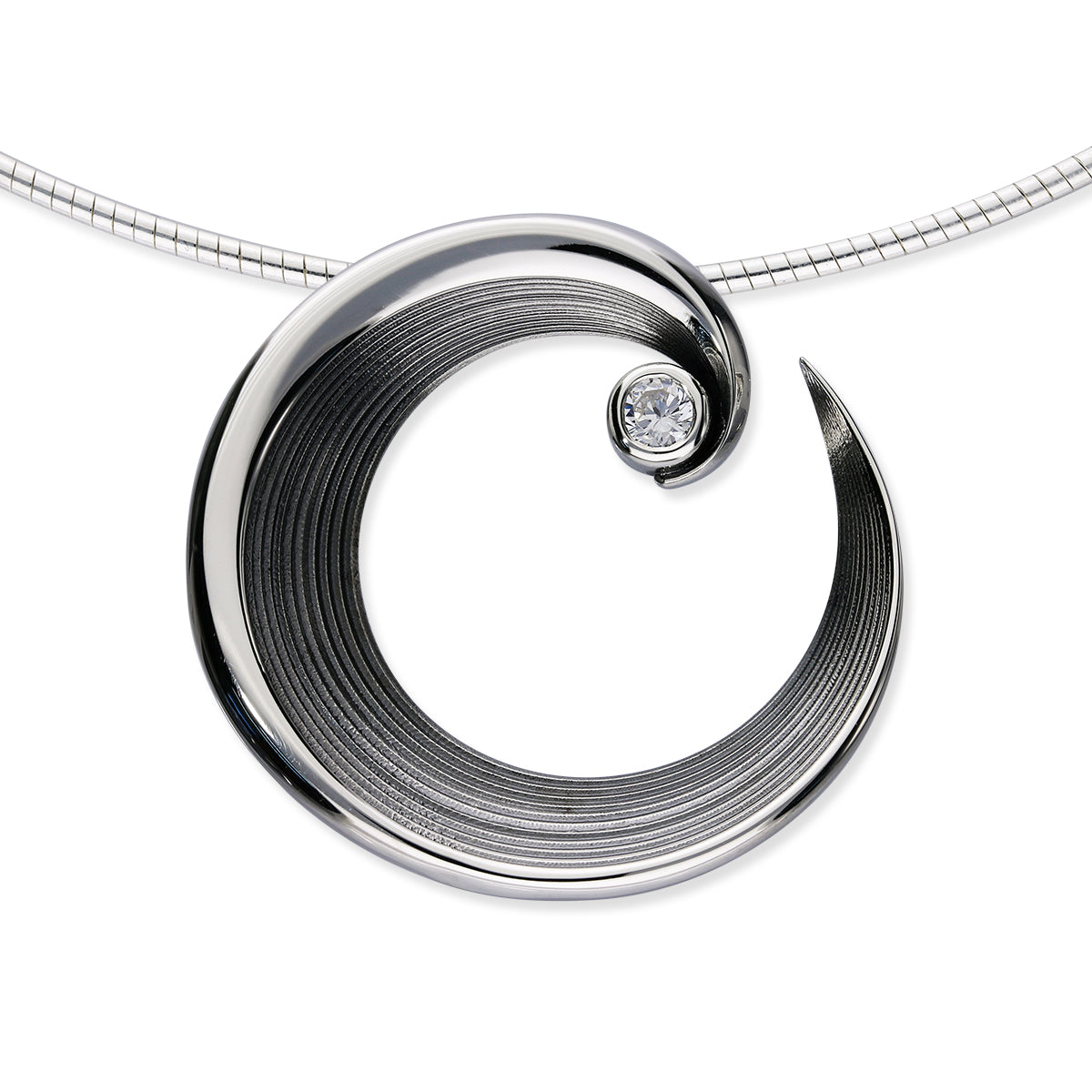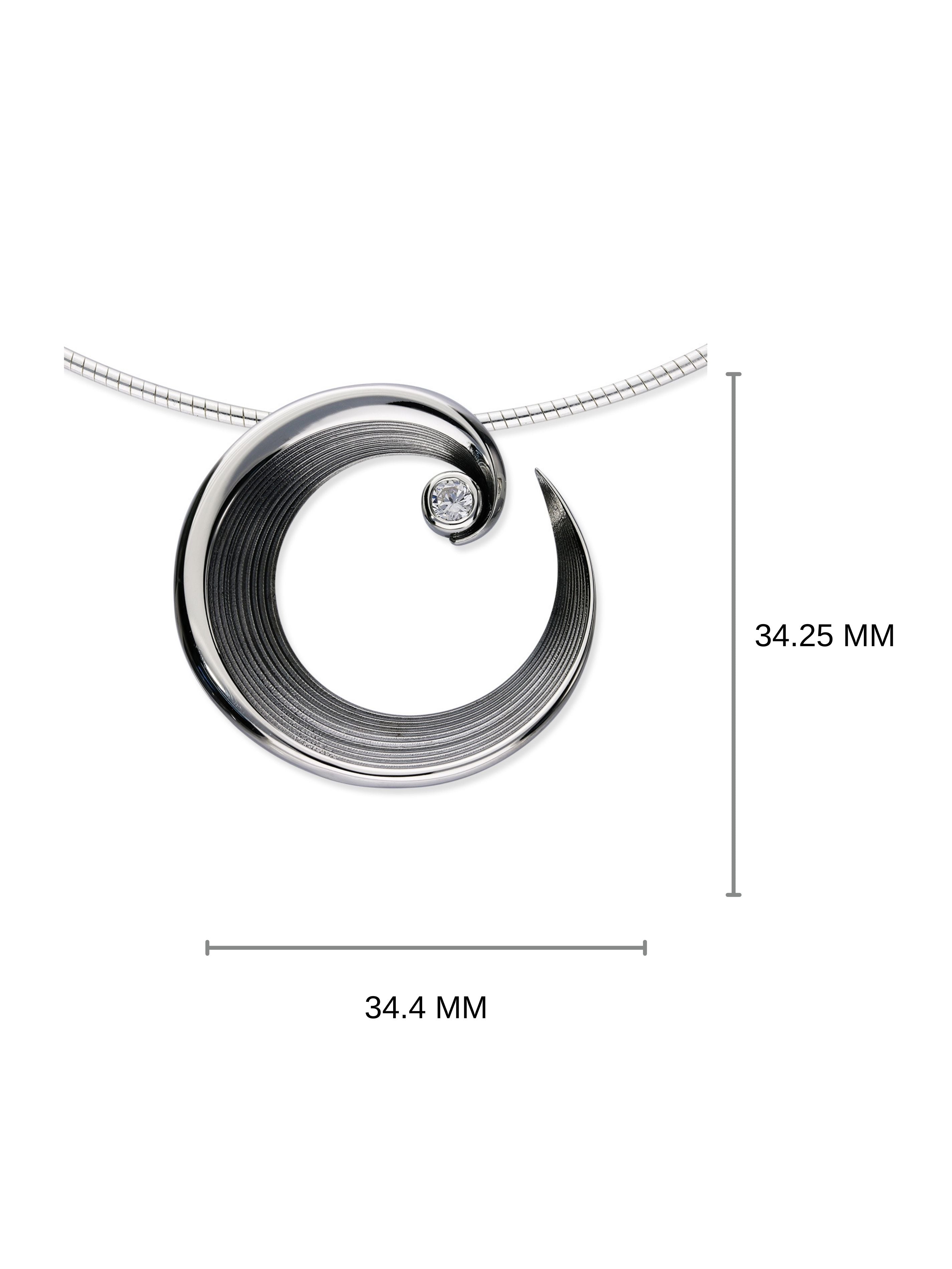 Crafted from 100% eco silver, this striking pendant captures the fluid beauty of rolling ocean waves with its rich, textured design. At its heart, a 4mm cubic zirconia sparkles, elegantly set to mirror the glint of sunlight on water. Suspended on an 18" sterling silver wire, this unique piece brings a touch of coastal elegance to any outfit.